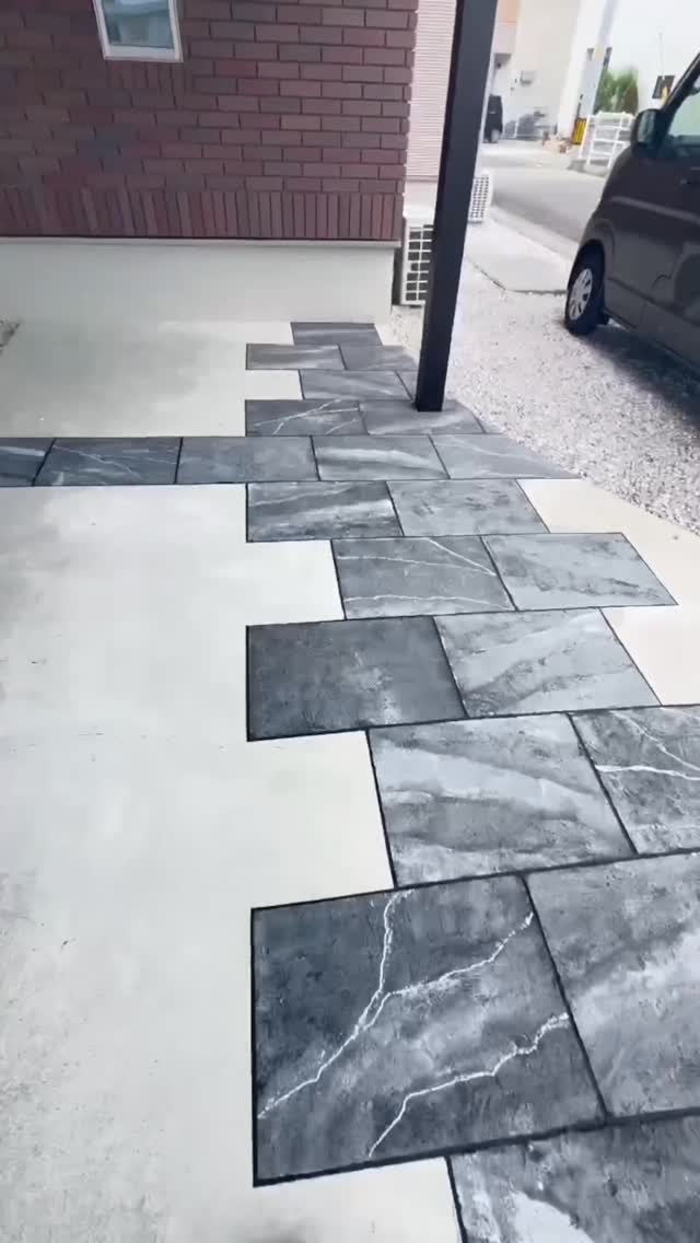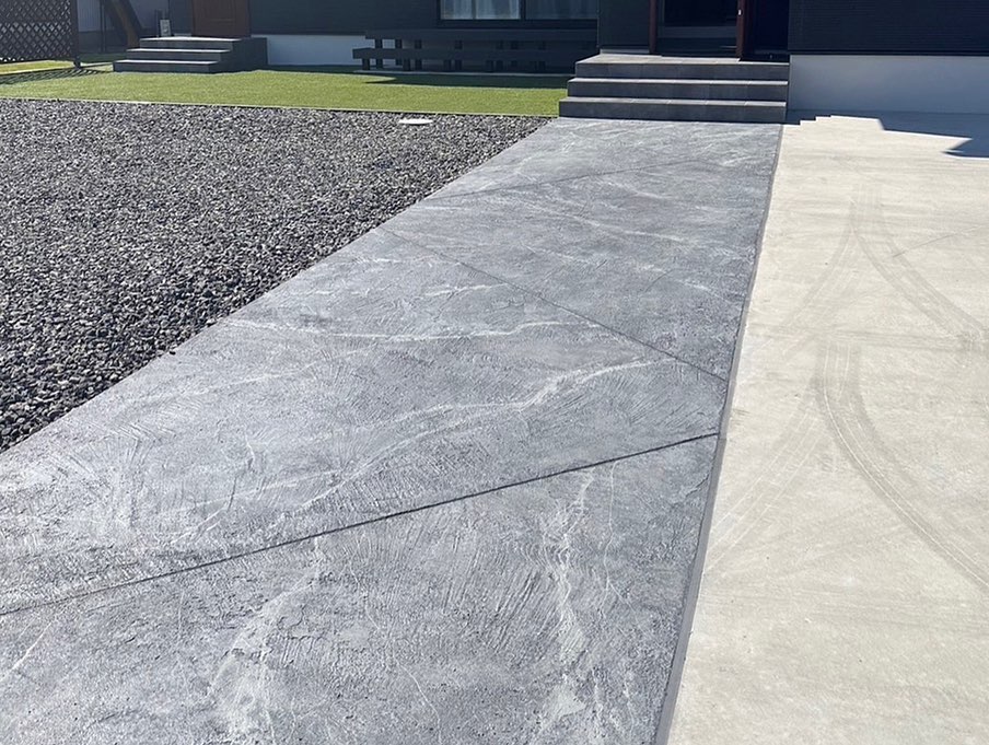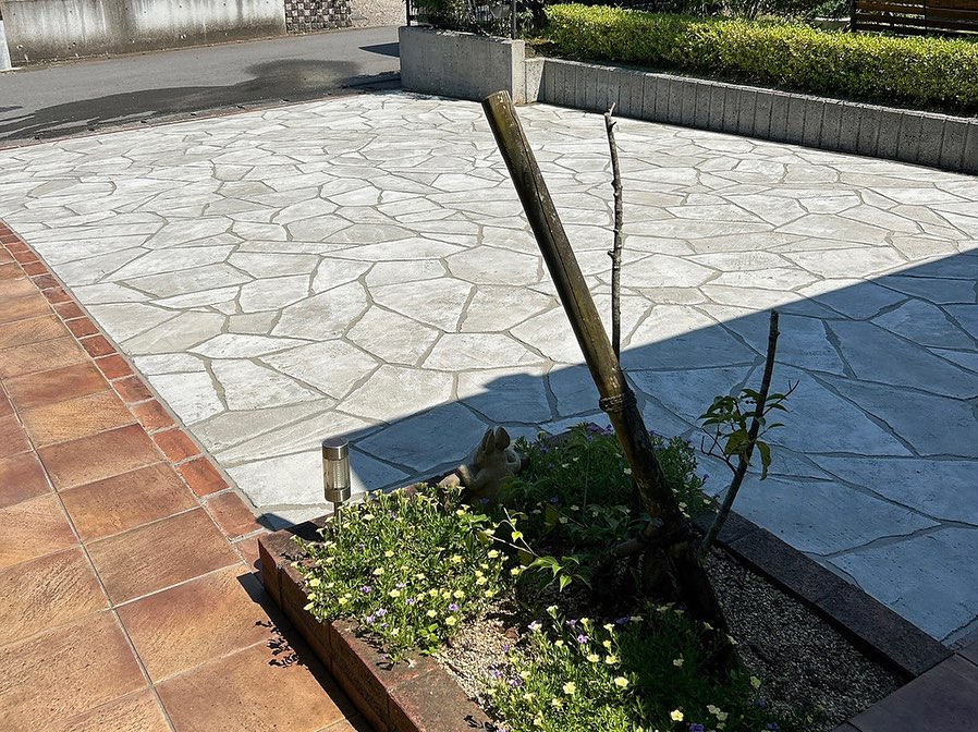 「ローラーストーン」は、既存のコンクリートの上から特殊塗料で石張りやタイル調のデザインを施す技術です。